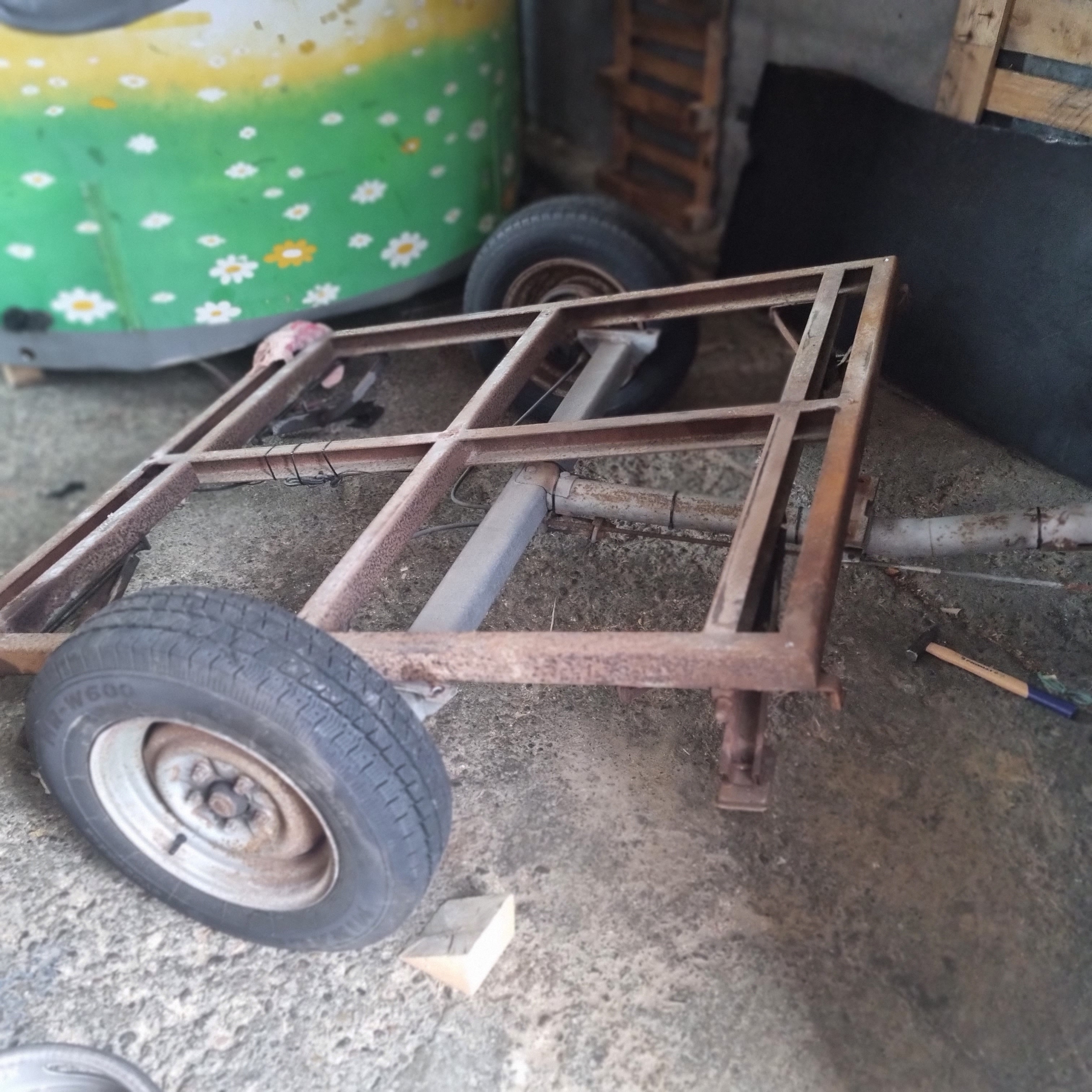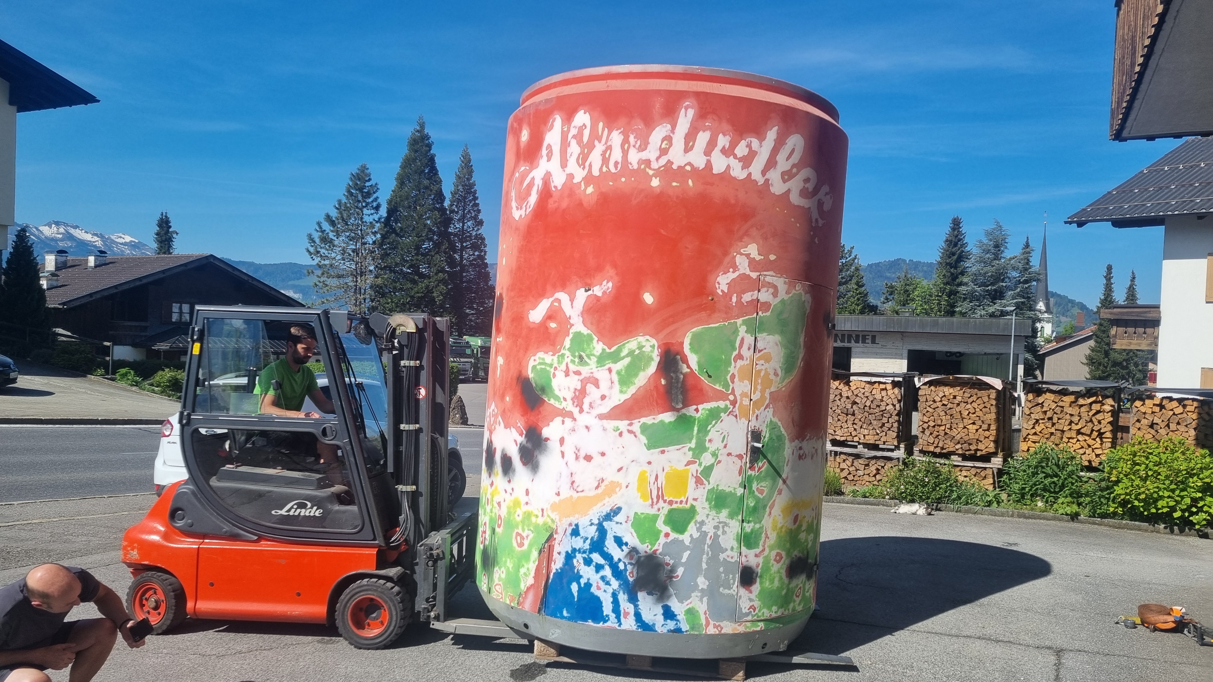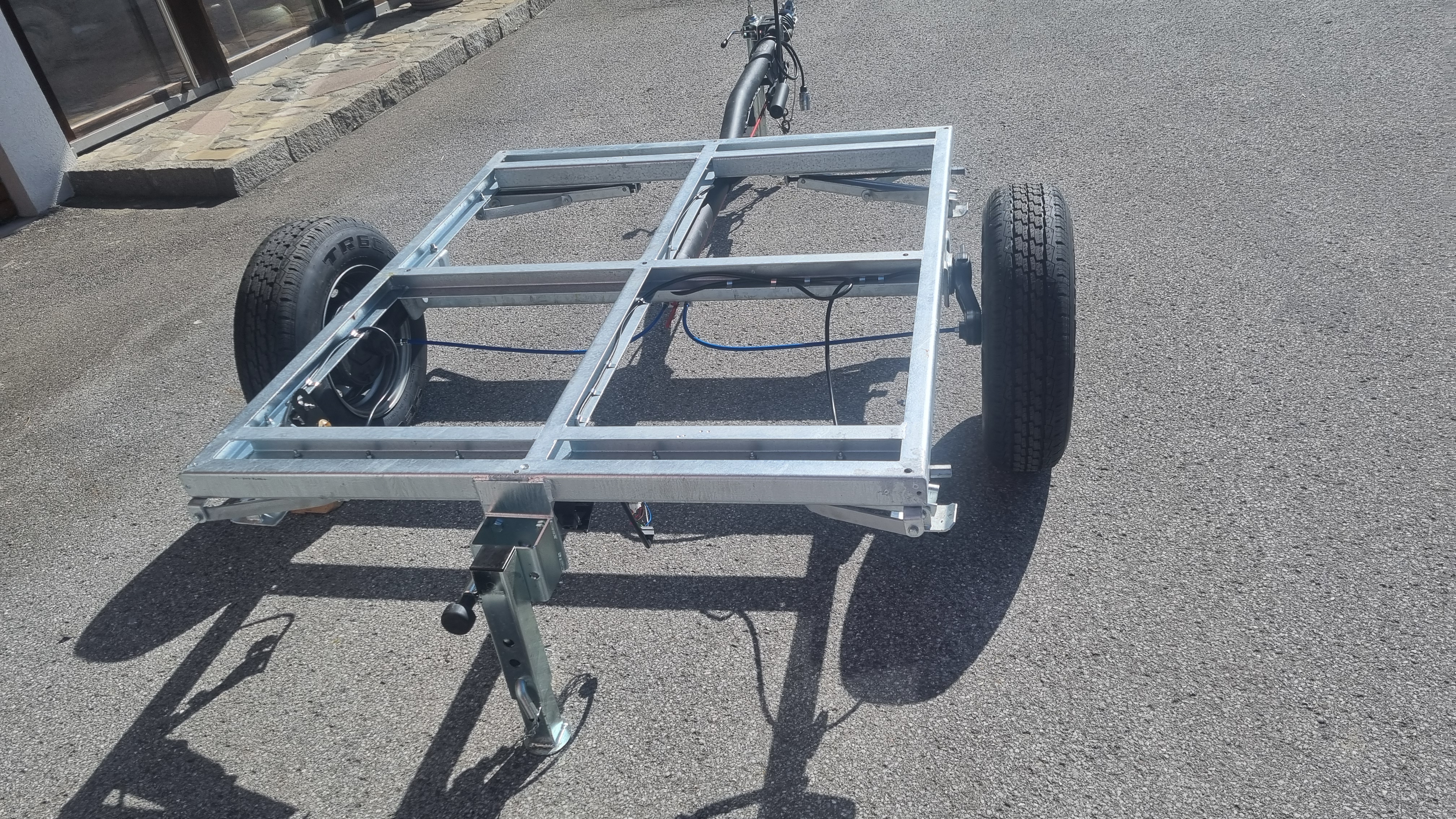 Bei strömendem Regen ging die Heimreise von Wien über Salzburg - München nach Hause in Lingenau. Danach fing die Arbeit an. Mein Plan war, den Anhänger "ghörig" zu restaurieren, also Dose vom Gestell demontieren und mit dem Stapler herunterzuheben, das Gestell habe ich dann sandgestrahlt und neu feuerverzinkt. Da die Bremsen alt waren und es keinen Ersatz mehr gab, musste eine neue Achse vom "Hängermacher Krumbach" rein. Sehr viele Stunden habe ich auch damit verbracht, die vielschichtige Lackierung so zu schleifen, dass keine Übergänge mehr sichtbar sind und mit dem Vignettenschaber und Fön entfernte ich sehr, sehr viele Blumen und Schriften.